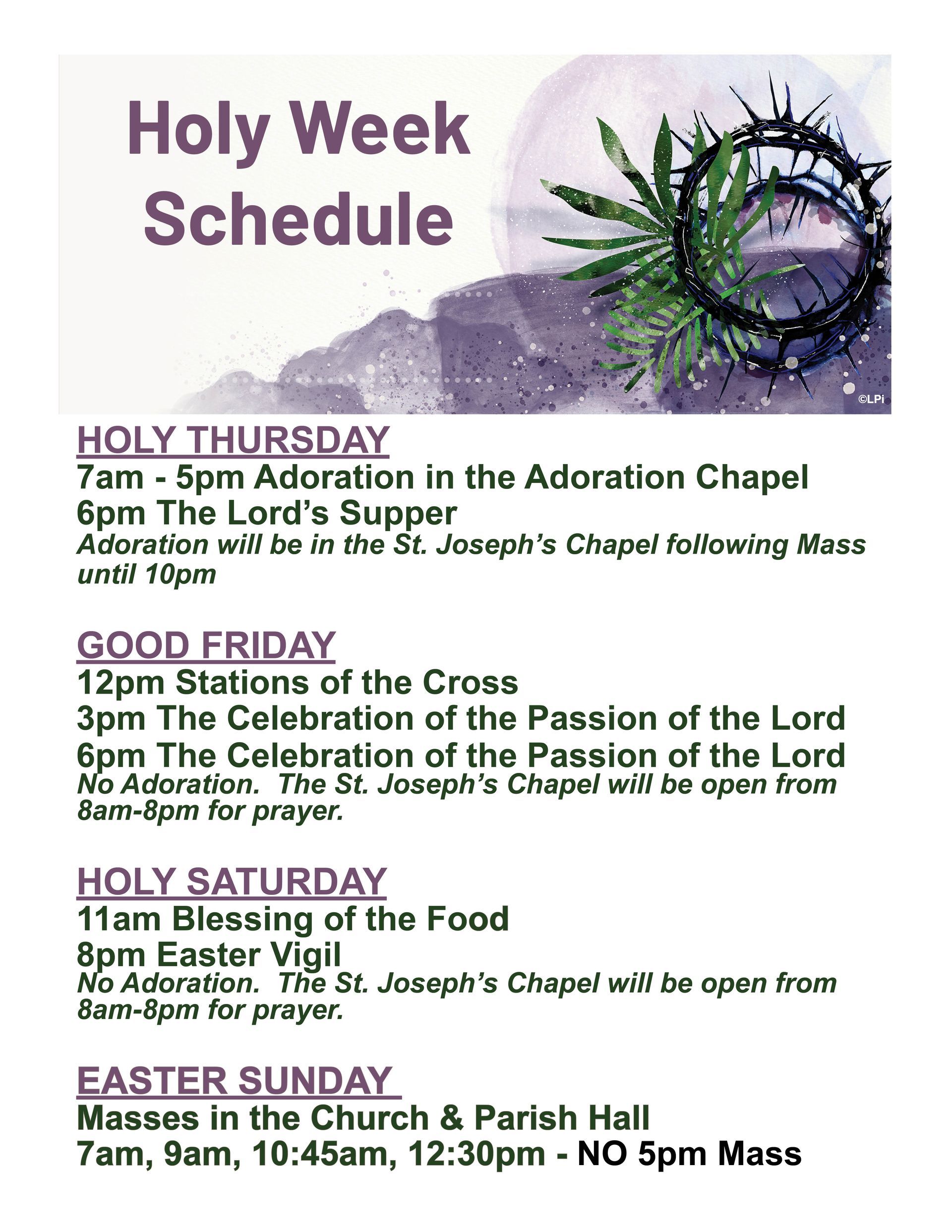 Holy Week Schedule
